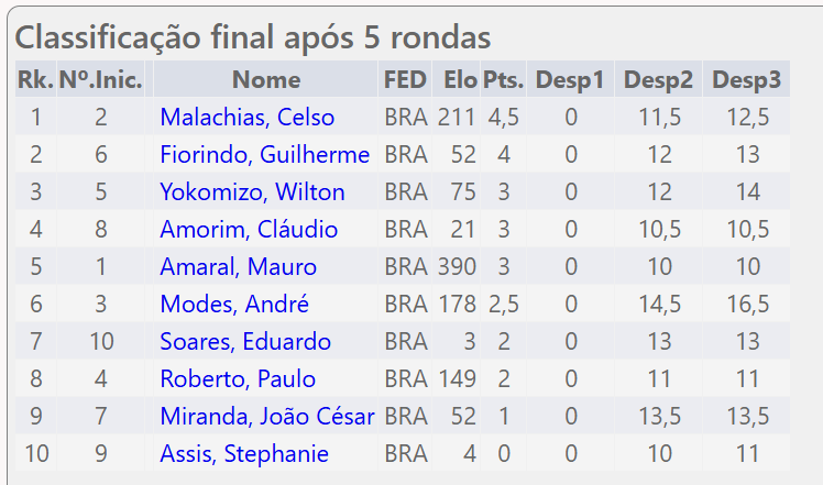 Esse foi o torneio que abriu o ranking de dezembro. Foram 10 participantes e foi disputado até a última rodada, quando o Celso Malachias, com 4 pontos, e o Guilherme Fiorindo, com 3,5 pontos, se enfrentaram. A partida deu empate e o Celso levou a taça.