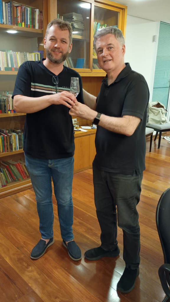 Guilherme Fiorindo entrega a taça para o Celso Malachias