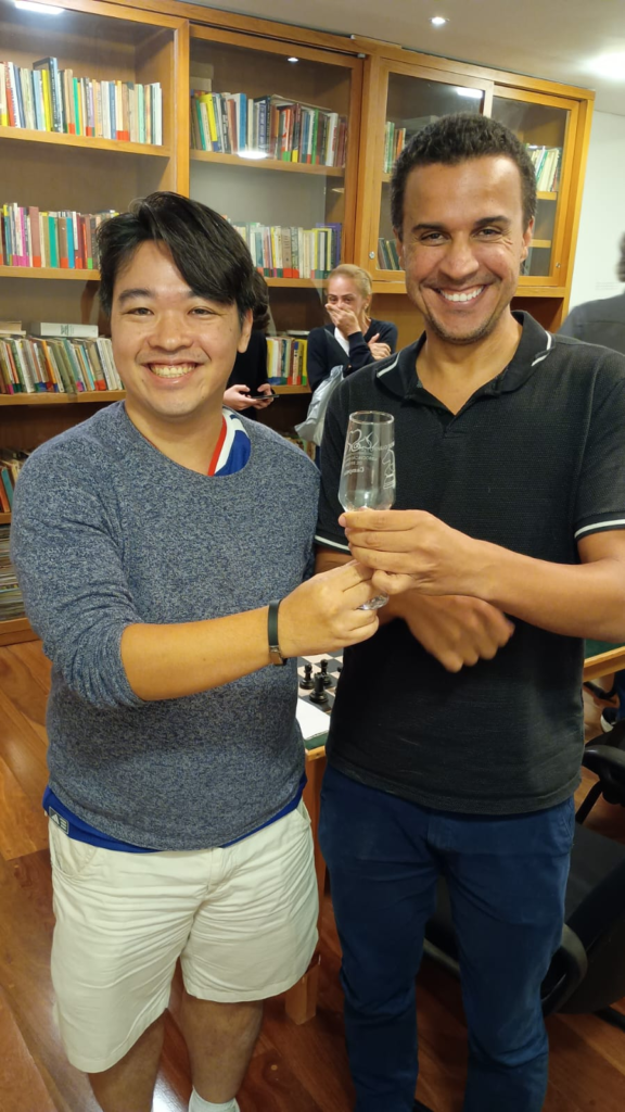 Wilton Yokomizo entrega o troféu para o Rodrigo Mendes
